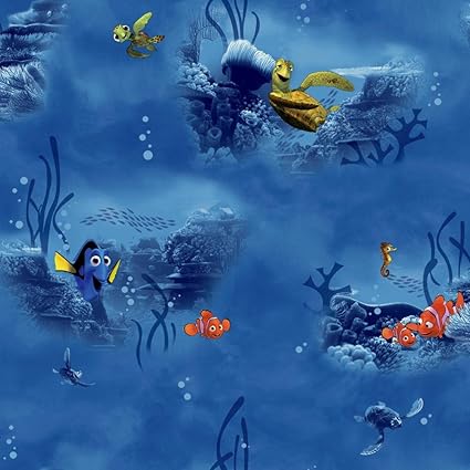 York Wallcoverings Ds7902 Walt Disney Kids Ii Nemo Under Water Wallpaper Bright Blue Yellow Orange Green Tan Black White Brown